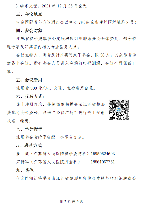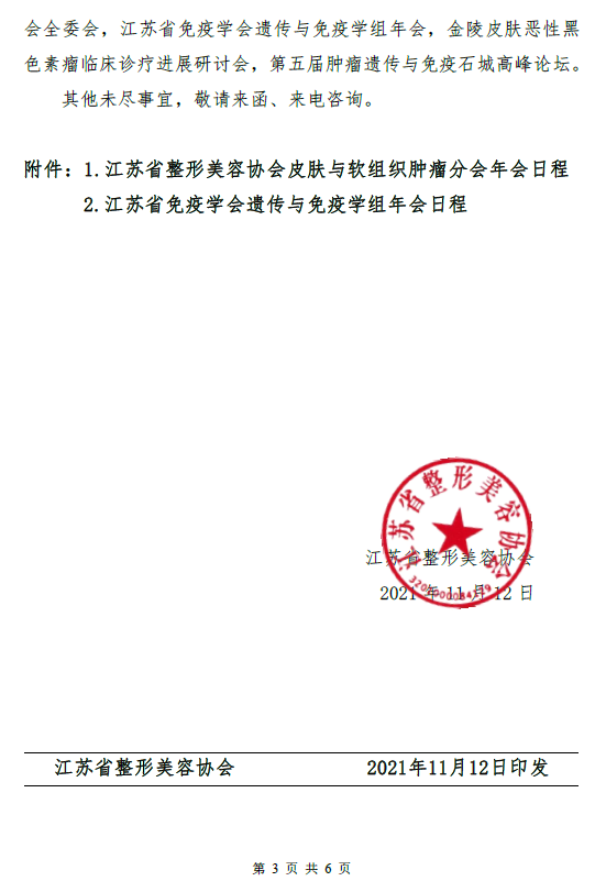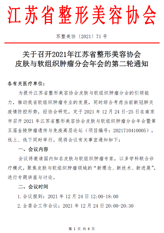 关于召开2021年江苏省整形美容协会皮肤与软组织肿瘤分会年会的第二轮通知