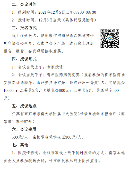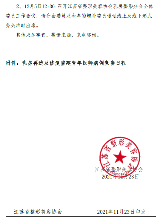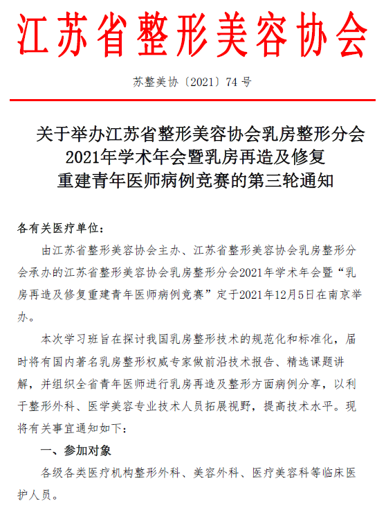 关于举办江苏省整形美容协会乳房整形分会2021年学术年会暨乳房再造及修复重建青年医师病例竞赛的第三轮通知