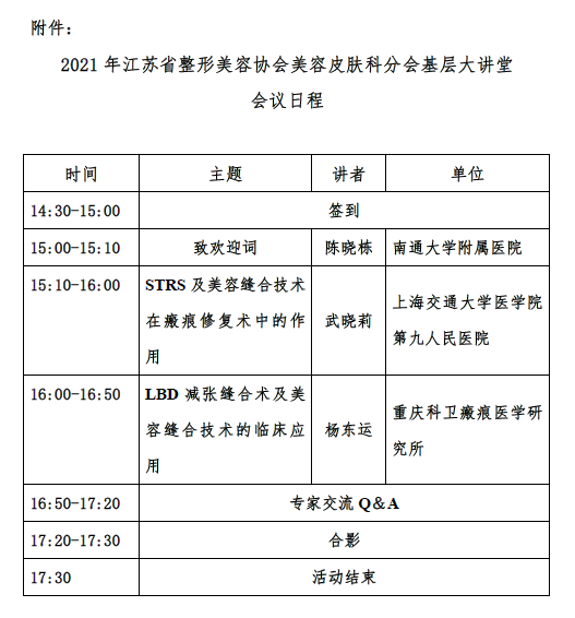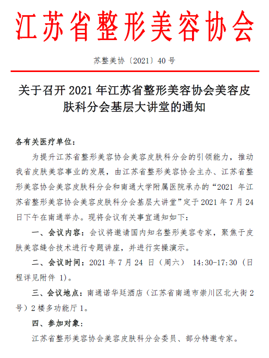 关于召开2021年江苏省整形美容协会美容皮肤科分会基层大讲堂的通知