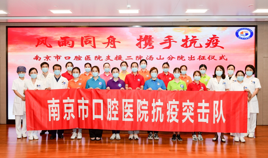 医院举行了简短的出征仪式,为出征医护人员加油鼓劲。出征现场,院长、党委副书记徐艳为核酸检测突击队代表邹进副主任医师和谢玲玲护士长授予了队旗。徐艳院长表示,疫情是考验我们医务工作者的关键时刻,在这场疫情阻击战中,我院医护充分展现出了南医口腔、江苏省口腔医院的力量、速度和温度,叮嘱大家在完成任务的同时,做好个人防护,注意身体状况。