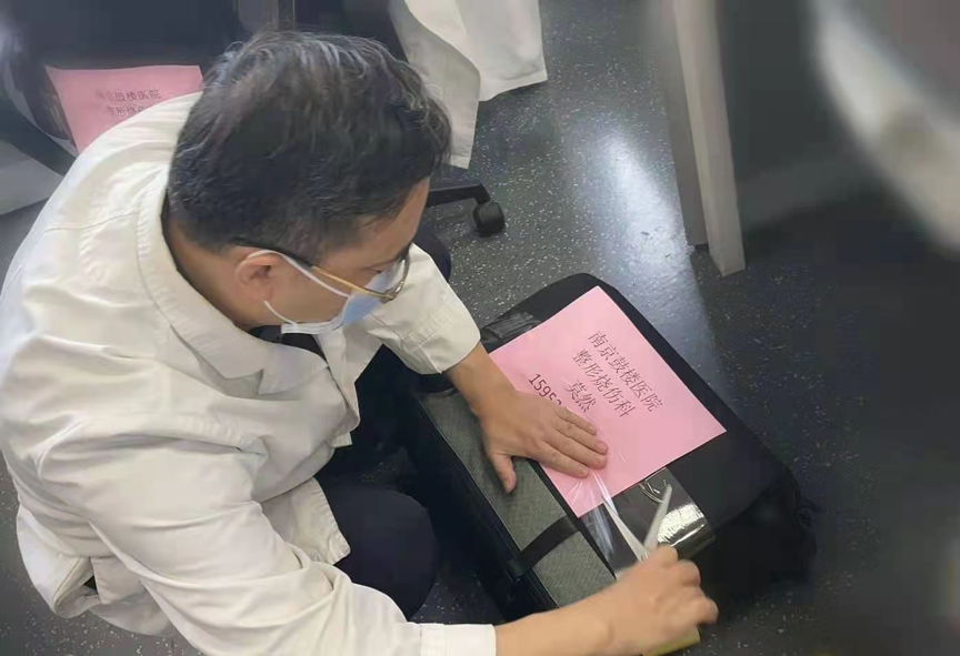 众生安危,责任重大!7月31日凌晨南京鼓楼医院整形烧伤科的莫然主治医师作为医院第四批医疗队的一员驰援南京汤山公共卫生医疗中心,郑东风主任和陈婧婧护士长亲自为他打理行装,为他送行。