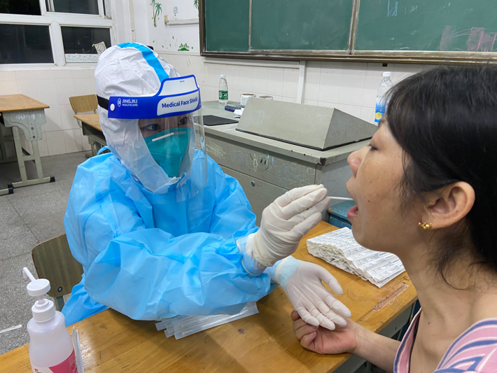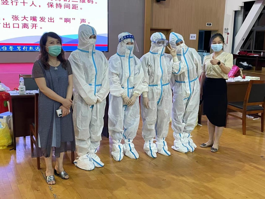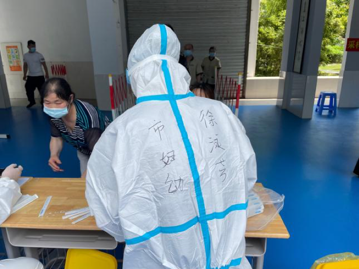 这些逆行的背影中不仅有各科室的业务骨干,也有南京大学口腔医学院的学生党员,还有受过培训的后备检测队伍,还有众多“以青春之力、担抗疫之责”的“95后”“00后”,都在时刻准备支援。队员们抵达工作点后便立即投入工作,头顶烈日,身穿密闭防护服,汗流浃背的他们没有一句抱怨。核酸采集检测的工作往往是连夜进行的,队员们披星戴月、争分夺秒,只为确保核酸采集检测任务按时完成。直到目前,赴禄口社区高风险地区开展核酸采集工作的医疗队员已连续工作8天,暂未接到可以撤回的指令,医院也在第一时间为队员们送去生活物资。