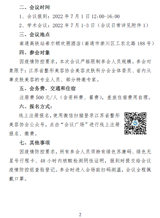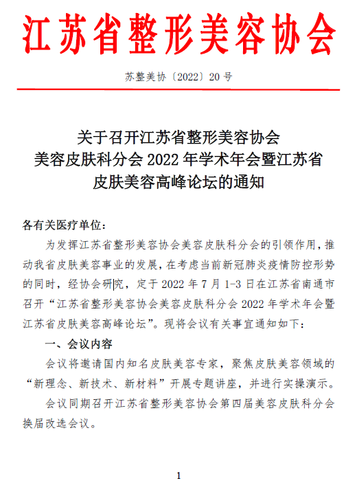 关于召开江苏省整形美容协会美容皮肤科分会2022 年学术年会暨江苏省皮肤美容高峰论坛的通知