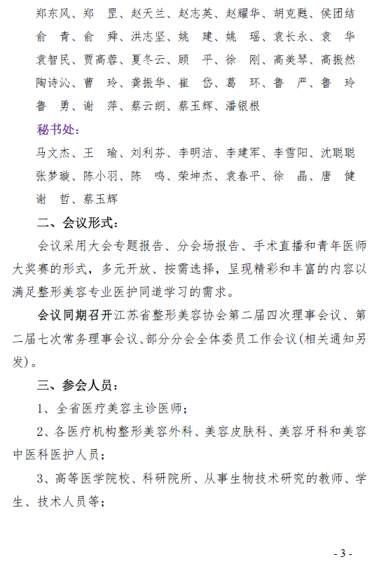 关于举办2021年第三届江苏省整形美容大会的第三轮通知