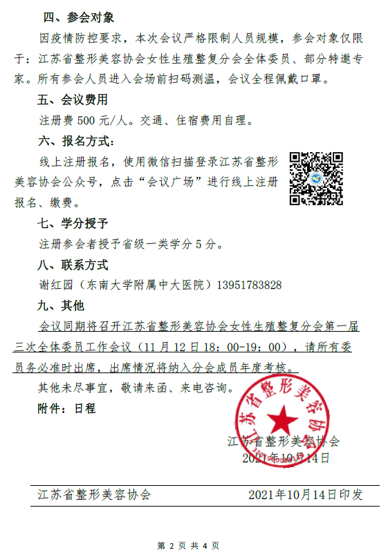 关于召开2021年江苏省整形美容协会女性生殖整复分会年会的通知